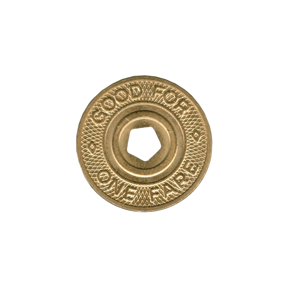 This is a New York City subway token, also from 1995. The token came from a clerk in a subway station where you walked up to the booth, stuffed your dollar under the window, and said, “One.” A token was returned and that token then put into a slot in a turnstile, which let you enter the subway. It was fast, could be a bit gruff, but it was also quite efficient.